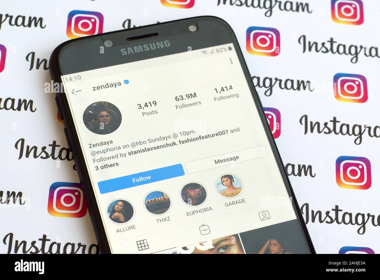 Ny Usa December 4 2019 Zendaya Official Instagram Account On Smartphone Screen On Paper Instagram Banner Stock Photo Alamy